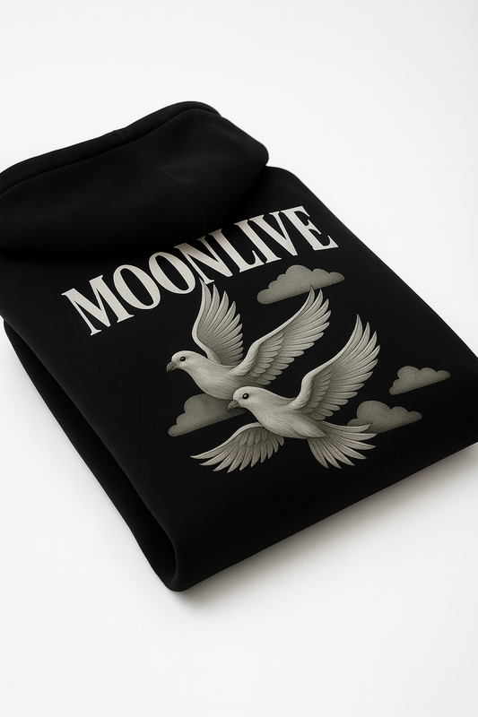 MOONLIVE “Doves” Oversized Premium Hoodie – Schwarz