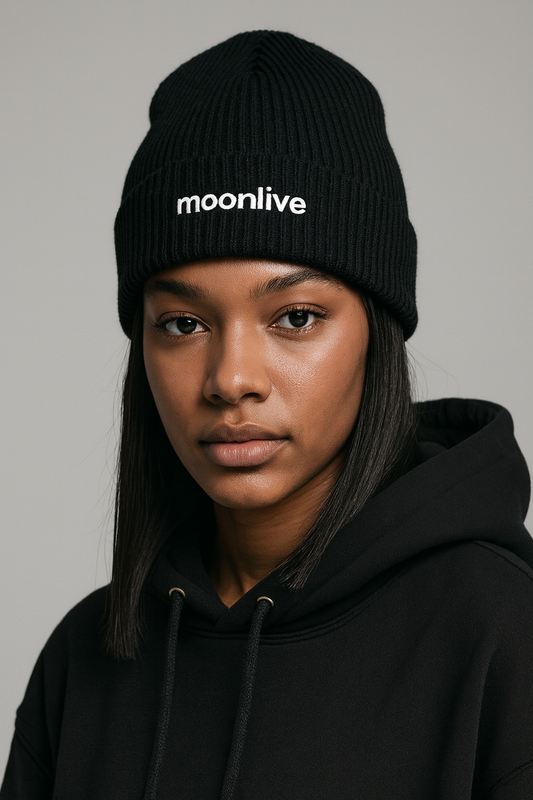MOONLIVE Organic Rib Beanie – Schwarz